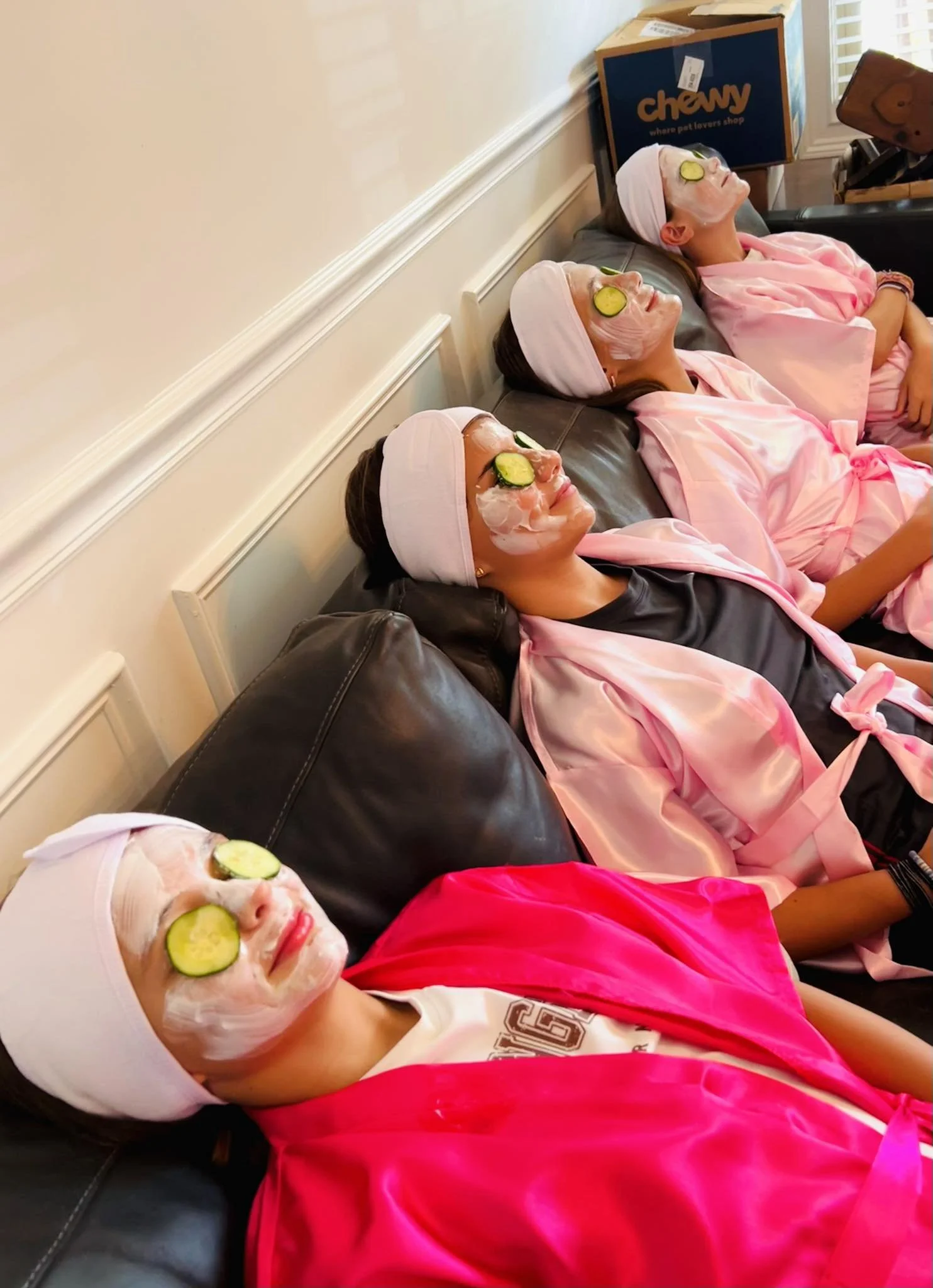 — Base activities: Robes, sandals and headwraps for each guest to wear during the party. Mini manicures & mini pedis with our lavender/rose sugar scrubs, a bubbly foot soak and refreshing face masks with natural ingredients.