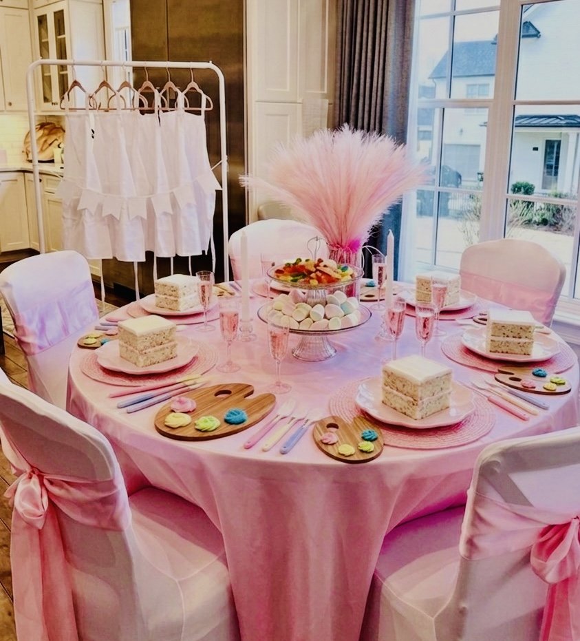 1 Coordinator (Set Up & Clean Up). Beautifully decorated table & chairs with a soft, aesthetic setup to create the perfect cake painting atmosphere.