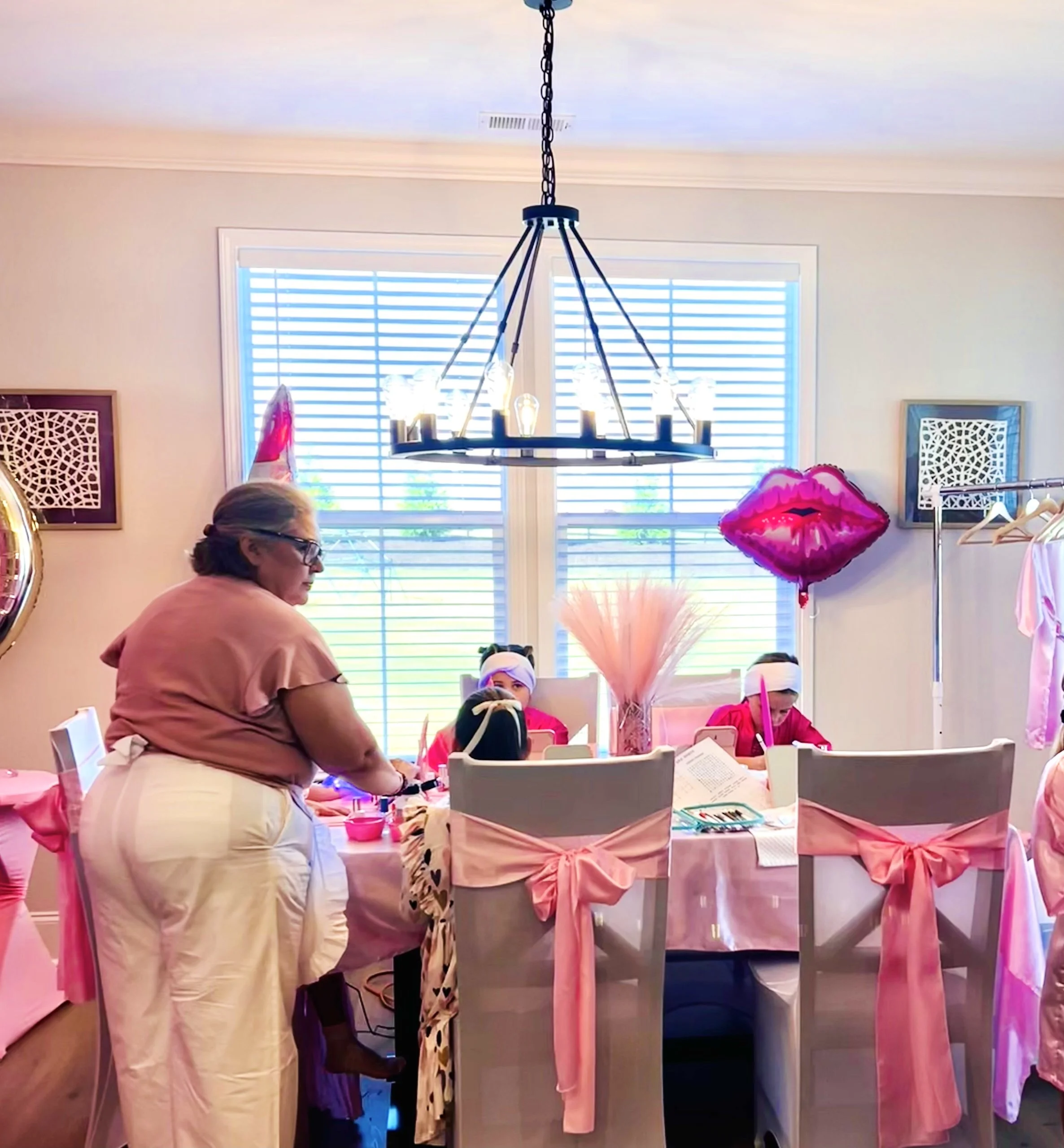 1. Party Table Setup – A beautifully decorated table with chairs where initial activities take place (table and chairs provided by the client).